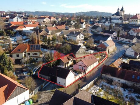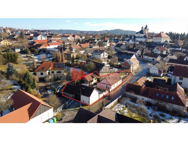 s vedlejšími stavbami v blízkosti centra obce Sepekov.